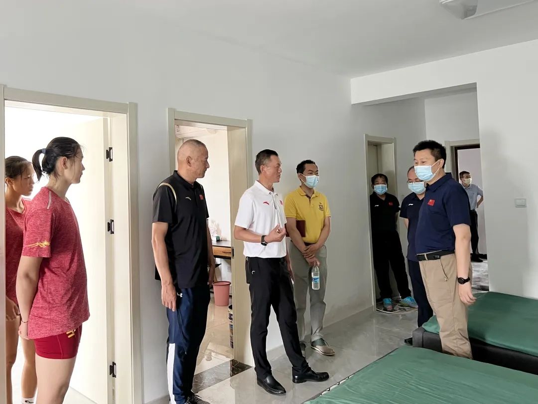 慰问期间,校领导一行与运动员、教练员亲切交流,详细了解三支队伍的训练情况、学习情况及生活饮食情况等,实地调研走访运动员宿舍和训练场地,观看运动队实训。