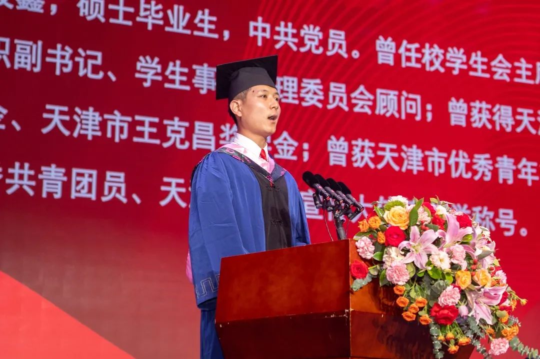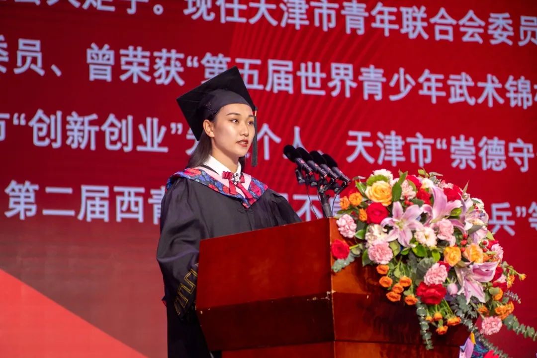 本科毕业生代表李雪娜发言,号召全体毕业生发扬天体精神,把理想播种在广阔的时代沃土,奋力书写赓续百年伟业的青春华章。