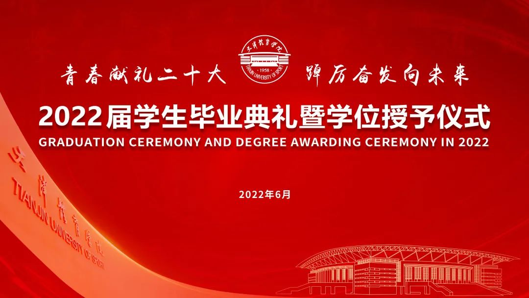 青春献礼二十大,踔厉奋发向未来。天津体育学院2022届学生毕业典礼暨学位授予仪式于2022年6月28日在大学生活动中心报告厅隆重举行。天津体育学院党委书记张立顺,党委副书记、院长张欣,党委常委、副院长宋爱军,党委常委、市纪委监委驻天津体育学院纪检监察组组长张洺涛,党委常委、组织部部长叶加宝,党委常委、宣传部部长刘原,党委常委、统战部部长依惠琴出席毕业典礼。学校各党政部门、教辅单位主要负责同志,各二级教学单位全体班子成员,全体教研室主任、研究生导师、辅导员,以及全体2022届毕业生在线下和“云端”齐聚一堂,共同欢庆毕业盛典。毕业典礼由党委常委、副院长张卫国主持。