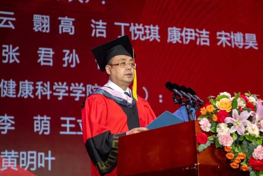 教师代表刘洪俊教授发言,表达了对2022届毕业生的真诚祝贺与祝福,鼓励同学们做让自己尊重的人、懂得感恩的人、勇于奋斗的人,做勇敢走在时代前列的奋进者、开拓者、奉献者。