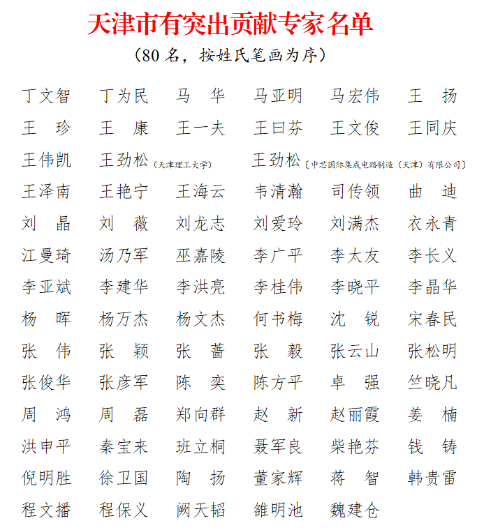 天津市有突出贡献专家选拔对象为长期在我市自然科学、社会科学各学科、领域和经济、社会发展各行业一线工作,取得突出业绩、做出重要贡献的在职专业技术人才。每三年选拔一次,每次选拔80人。