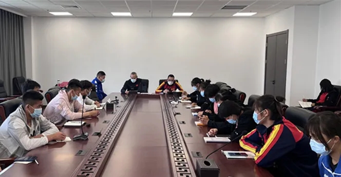副院长张欣围绕学习习近平总书记的重要讲话精神与全体教练员、运动员进行交流,并对赛艇队深入学习宣传贯彻北京冬奥精神提出要求。一是要贯彻落实习近平总书记关于体育的重要论述和指示精神,组织全体运动员、教练员系统学、持续学、深入学,提高我校竞技体育综合实力;二是要深入学习领会北京冬奥会、冬残奥会筹办举办的“四个坚持”宝贵经验,深刻认识中国共产党是我们成就伟业最可靠的主心骨;三是要大力弘扬“胸怀大局、自信开放、迎难而上、追求卓越、共创未来”的北京冬奥精神,在机遇面前主动出击,在困难面前迎难而上;四是要坚持执行“一刻也不能停,一步也不能错,一天也误不起”的精神,要有迎难而上、奋发苦干实干、坚韧不拔的昂扬斗志,努力做好学习、训练、防疫相关工作,全力备战十五运。他勉励全体教练员、运动员,弘扬北京冬奥精神,传承冬奥遗产,激扬奋进力量,共同谱写我校竞技体育发展新篇章,以优异成绩迎接党的二十大胜利召开!