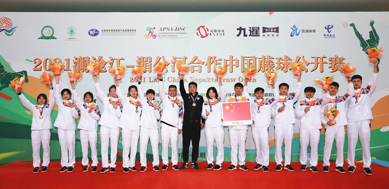 我校学生莫祖辉、李恒昭、谢泽龙、倪庆彬、陈伟涛入选中国藤球队参加了此次比赛,运动训练科学学院党委书记张志斌担任中国藤球队领队、小球教研室教师毛俊生担任中国藤球队教练员。经过激烈角逐,最终我校学生夺得男子三人赛、男子四人赛两项冠军。