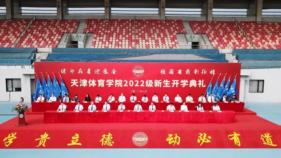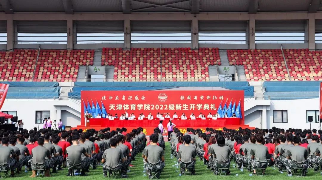 2022年9月14日上午9时30分,天津体育学院2022级新生开学典礼在田径场举行。党委副书记、院长张欣,党委常委、市纪委监委驻天津体育学院纪检监察组组长张洺涛,党委常委、组织部部长、体育教育学院院长叶加宝,党委常委、宣传部部长刘原,党委常委、统战部部长依惠琴出席典礼。相关职能部门和二级教学单位领导、全体新生辅导员、教师代表与全体新生齐聚一堂,共同欢庆开学盛典。开学典礼由党委副书记宋爱军主持。
