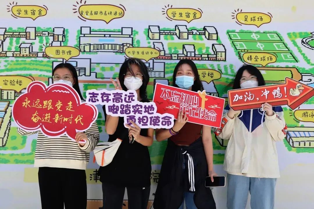 迎新现场秩序井然,展板、道旗、电子屏、指示牌、签字板一应俱全。新生们纷纷在签字板上写下对自己大学生活的祝福与期许,在展板前拍照定格自己初入天体的难忘时刻。