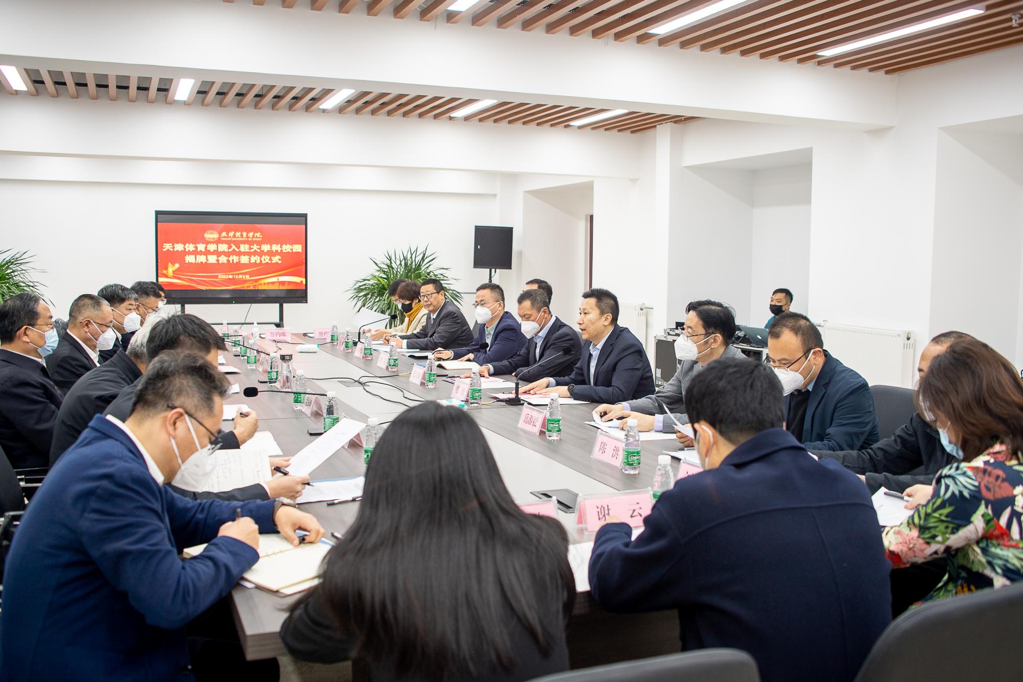 期间,天津体育学院与羽彤智能科技有限公司、天津中医药大学科技园发展有限公司签署合作协议。天津体育学院运动保健功效产品研发项目负责人、大学科技园入驻企业代表、天津中医药大学资产经营公司负责人分别就深入开展政产学研合作,发挥创新资源集聚功能,推动科技成果转化落地等内容作了交流发言。