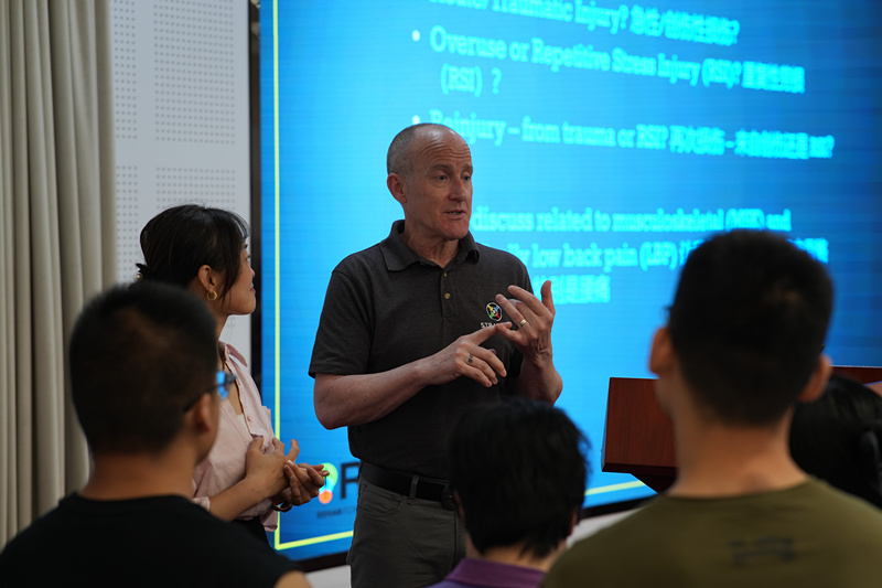培训中,国际认证体能训练专家丹尼尔·克朗贝克为学员们讲解了基于损伤预防和表现提升的康复训练设计P=T=R;前国家田径队跳远运动员、首都体育学院高级教练员谭正则介绍了高校体育教师教练员功能性体能训练的理论与实践;国家体育总局体育科学研究所研究员闫琪分享了大健康背景下的功能训练运动处方在预防损伤、缓解疼痛、促进健康等方面的独特作用与应用方法;天津体育学院教授金宗强介绍了青少年体能训练的动态与进展。在专题讲座之余,培训班组织全体学员参观了我校数字体能实验室。通过学习、研讨、参观等多种学习方式,学员们进一步深化了对体能训练理论的理解,提升了体能训练实战技能。