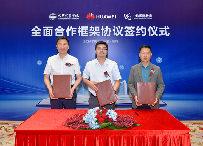 为深入贯彻习近平总书记关于新质生产力的重要论述,不断赋能学校事业高质量发展,更好服务教育强国、体育强国、健康中国建设,近日,党委副书记、院长张欣一行赴深圳、广州等地开展调研。华为全球教育行业解决方案总经理李声阳、华为天津政企副总经理李德强、中软国际教育科技集团高级副总裁罗娅、中软国际教育科技集团津冀鲁区域总经理王占云、广州体育学院院长胡敏、广州体育学院副院长侯晓晖出席相关活动。调研期间,张欣一行实地走访了华为技术有限公司、中软国际教育科技集团深圳分公司和深圳开鸿数字产业发展有限公司,参观了华为研发基地、商用终端体验中心和运动健康科学实验室,了解了华为在智慧体育、智慧赛事以及全民健身等领域的研发成果,并与华为技术有限公司和北京中软国际教育科技股份有限公司签署了全面合作协议。根据协议,三方将围绕学科专业与人才培养、智慧体育示范校与科学训练、科教与产业融合等方面开展全方位的深度合作,为高水平体育科技自立自强培养复合型创新人才,不断培育数字体育经济新动能。