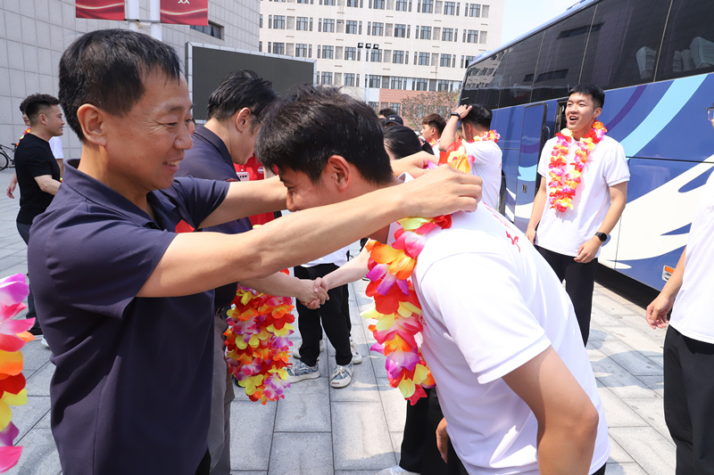 在带队教师王涛、胡月两位老师的带领下,40名志愿者顺利返校,前来迎接的领导们为师生献上美丽的花环。张卫国代表学校党委、行政向支教师生表示衷心的感谢和热烈的欢迎。他指出,在支教的两个月里,同学们克服了各种困难,全心全意投入到支教工作中,用实际行动践行了铮铮誓言和使命担当,树立了天体学子的良好形象,希望同学们在未来的学习和工作中,再接再厉,不断发扬天体人努力拼搏和无私奉献的精神,为健康中国、体育强国事业再立新功。