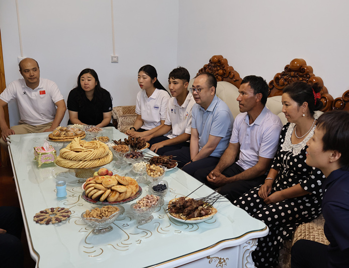 随后,宋爱军一行到学生阿卜杜赛提∙努尔麦麦提家进行家访。阿卜杜赛提所在的策勒县第一中学高三体考班共37名学生。我校支教师生根据班级实际情况,研究制定了个性化的备考方案,大幅度提升了学生文化课和专业课成绩,15人通过今年新疆高考体育类本科分数线。家访过程中,阿卜杜赛提的父亲始终洋溢着幸福的笑容,他表示:感谢国家的援疆政策,给新疆带来新变化、新气象,提升了新疆人民的生活幸福感;感谢天体援疆师生的共同努力,使孩子们的文化课和体育成绩有了质的提高,圆了他们的大学梦。