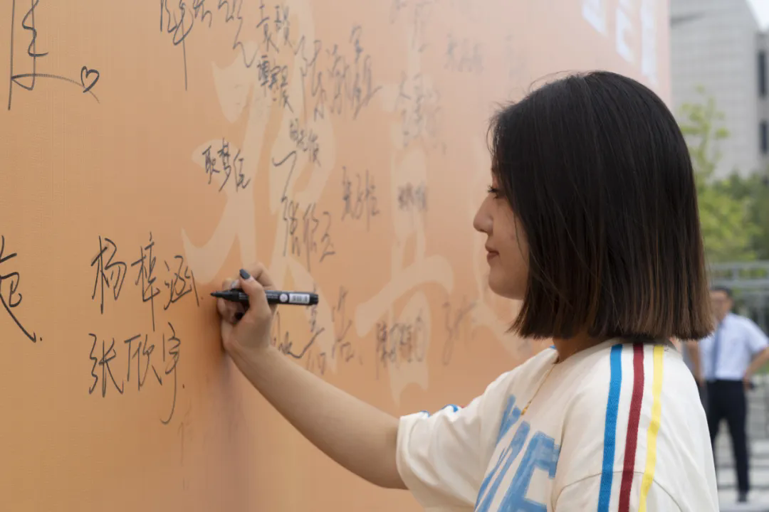 迎新现场环境井然有序,校园手绘地图、创意展板、电子屏、异形木塑等一应俱全,新生们纷纷在签字板前留下姓名并拍照打卡,定格在天体的难忘一刻。