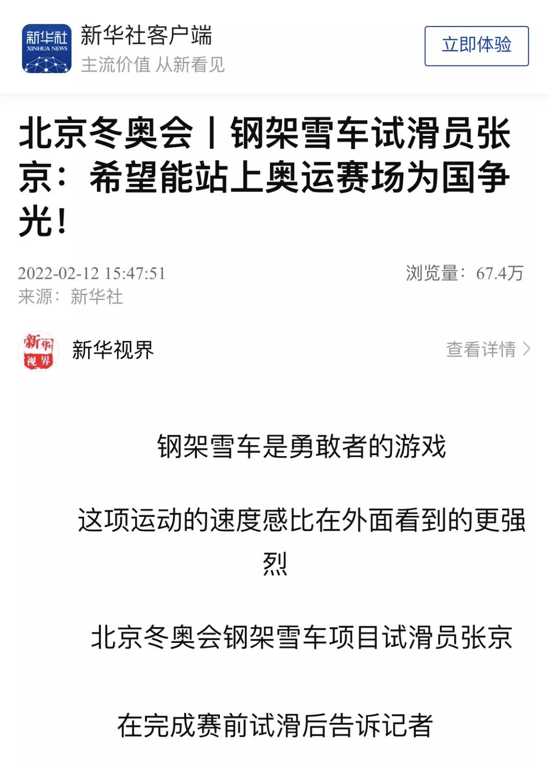 媒体看天体 | 新华社:我校学子、国家队试滑员张京助力中国钢架雪车队创造历史!