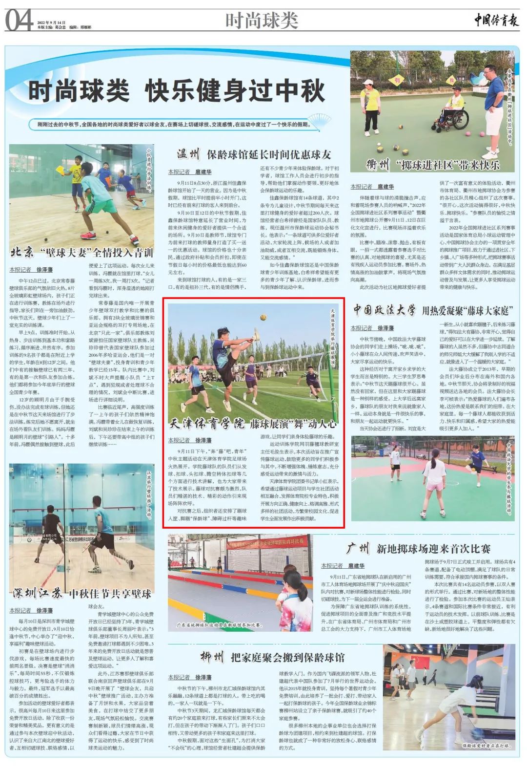 9月14日,《中国体育报》报道我校开展“奔‘藤’吧,青年”中秋主题活动,举行藤球展演,发挥体育院校专业特色,促进学生全面发展。