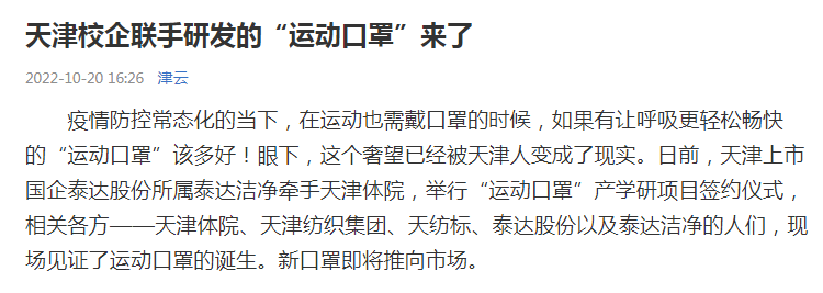 2022年10月18日,天津体育学院与天津泰达洁净材料有限公司产学研项目签约仪式在我校团泊校区乒羽馆举行。连日来,北方网、津云、《天津教育报》等我市主要媒体对此进行了报道。